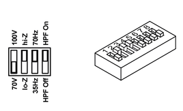 Ensure the rear-panel DIP switch for all relevant channels is set to the default lo-Z position (all models) and that the global 2Ω switch is OFF (for models 46, 424 and 232). This is the default setting for all Driveflex amplifiers:
